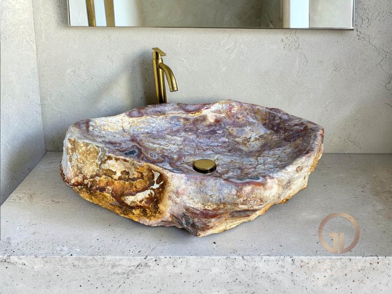 Der Panca Warna-Stein ist ein Naturstein, der wegen seiner unglaublichen Farbkombinationen und Maserungen, die an über Jahrtausende entstandene Mineralienlandschaften erinnern, sehr geschätzt wird. Jedes Stück weist einzigartige, von der Natur geschaffene Muster auf, wodurch jedes Waschbecken zu einem Unikat wird. Neben seiner Schönheit ist dieser Stein robust und widerstandsfähig und eignet sich daher perfekt für den täglichen Gebrauch als Waschbecken.