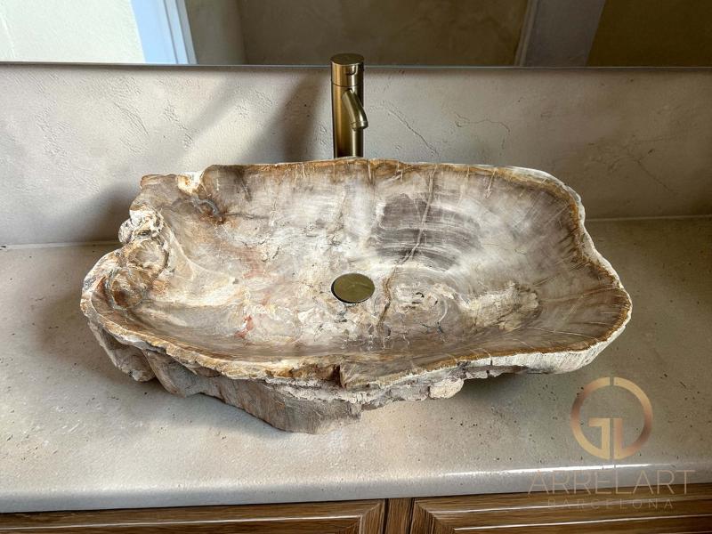 Steinwaschbecken aus versteinertem Holz.