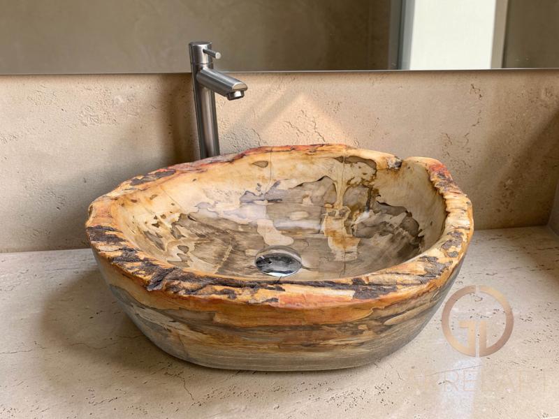 WASCHBECKEN AUS SEHR FEINEM VERSTEINERTEM HOLZ JEWEL