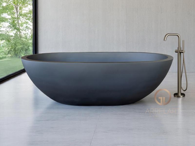 Decorative bathtub made from composite stone, an innovative material composed of high-quality resin and natural stone powder. This combination offers great resistance, durability and a pleasant texture to the touch, perfect for everyday use without sacrificing aesthetics.