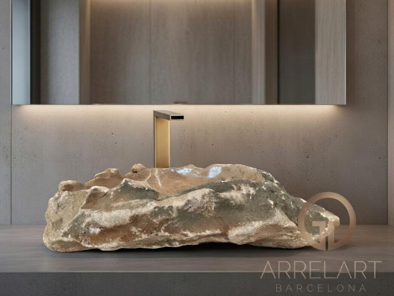 Onyx is a semi-precious stone of natural origin, valued for its translucent veins and warm shades ranging from creams and golds to ochres and browns. Each piece is unique, with patterns that seem to have been carved by time, turning each washbasin into a true sculpture.