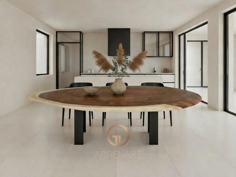 Espectacular mesa realizada con madera tropical de suar en una sola pieza.