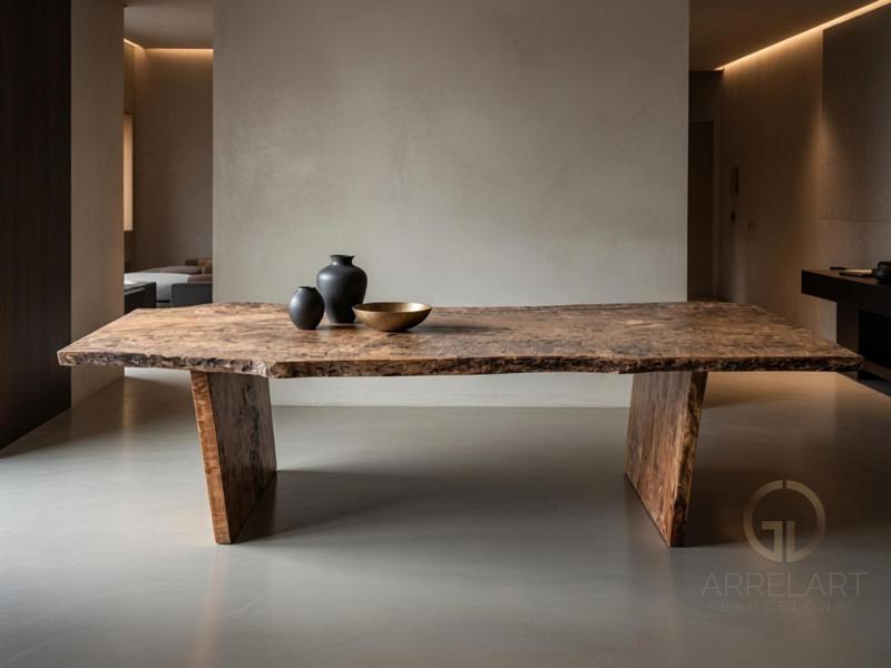 Côté décoration, cette table s'intègre harmonieusement à une variété de styles. Sa teinte chaleureuse et ses motifs distinctifs s'harmonisent aussi bien avec les intérieurs rustiques que contemporains. Associez-la à des chaises simples pour mettre en valeur sa beauté naturelle, ou à des éléments décoratifs aux tons neutres pour créer une atmosphère chaleureuse et sophistiquée.