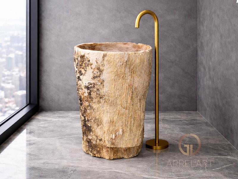 Nous vous présentons notre superbe lavabo à poser, soigneusement fabriqué en bois pétrifié naturel. Ce lavabo se distingue par son mélange éblouissant de couleurs ocre, marron et beige éclatantes. L'intérieur a été professionnellement poli pour obtenir un éclat naturel qui fait ressortir la beauté de la pierre, tandis que l'extérieur a conservé la texture originale du tronc pétrifié.