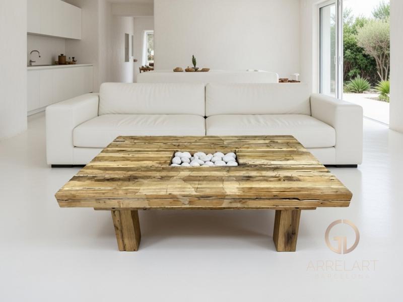 Tavolo realizzato con legno vecchio di teak riciclato